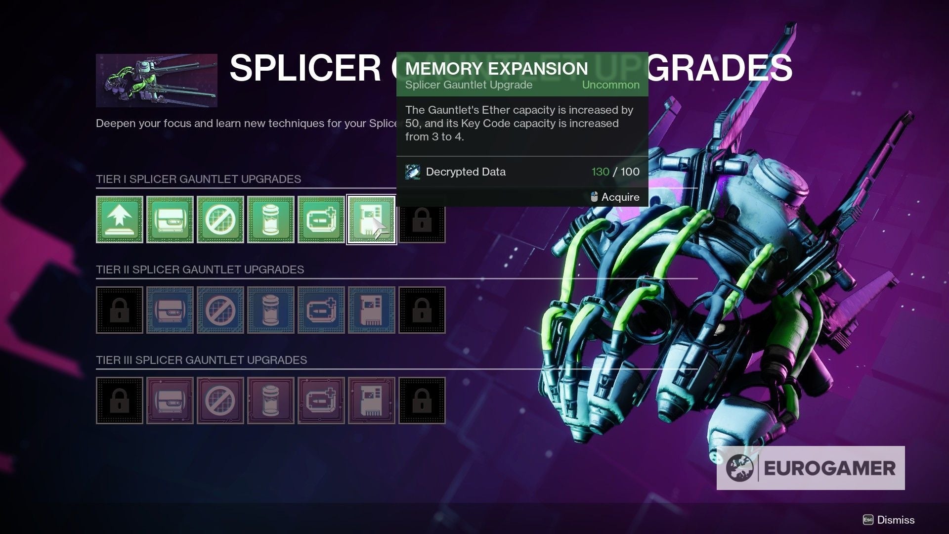 Let’s go through these one by one. Meanwhile, there are multiple Seasonal Challenges to pursue. These will be expanded on a weekly basis until the season ends, and will expire at the end of the season - so there’s no rush in getting them completed on their debut. The first week has two challenges that reward 150 Decrypted Data each, for a total of 300; ‘Hello, World’ tasks you with completing Path of the Splicer I, along with defeating Powerful Cabal, and ‘Maximum Override’ on the other hand tasks you with completing five Override missions and depositing Data Spikes during them. It’s December, which means the return of The Dawning and Moments of Triumph 2022! Elsewhere, the Season of the Seraph is here alongside More than a Weapon, Seraph Key Codes and Resonate Stems and the addition of Rose in Crucible. We’ve also seen a new dungeon, Spire of the Watcher, with has a chance of Hierarchy of Needs dropping upon completion. Earliear this year we had the arrival of King’s Fall and King’s Fall challenges, plus weapons including Doom of Chelchis and Touch of Malice. For The Witch Queen, learn how to get Dead Messenger and Parasite. Speaking of Override, the new Conflux Chests have a guaranteed drop for this currency (we received 30 per completion) as well as seasonal loot. Collect at least 50 Ether, use it in your Gauntlet by inspecting it to craft a Key Code, and then jump to an Override mission. Once you and the team took down the boss, you’ll notice a second chest alongside the usual boss one. Use the Key Code just by interacting with it, and the loot will be yours. Lastly, the fourth method is more straightforward. Reaching ranks 2, 12, and 32 of the season pass will reward you with Decrypted Data Trove, which grant a minimum of 100 Decrypted Data. Note: Bungie has said at launch it’s possible to acquire these on a full inventory, so make sure you have some room clear as not to lose them. Regardless of the method, obtaining this currency will increase your reputation with the Splicer Servitor, which is a great way to allowing you to Umbral Engrams.